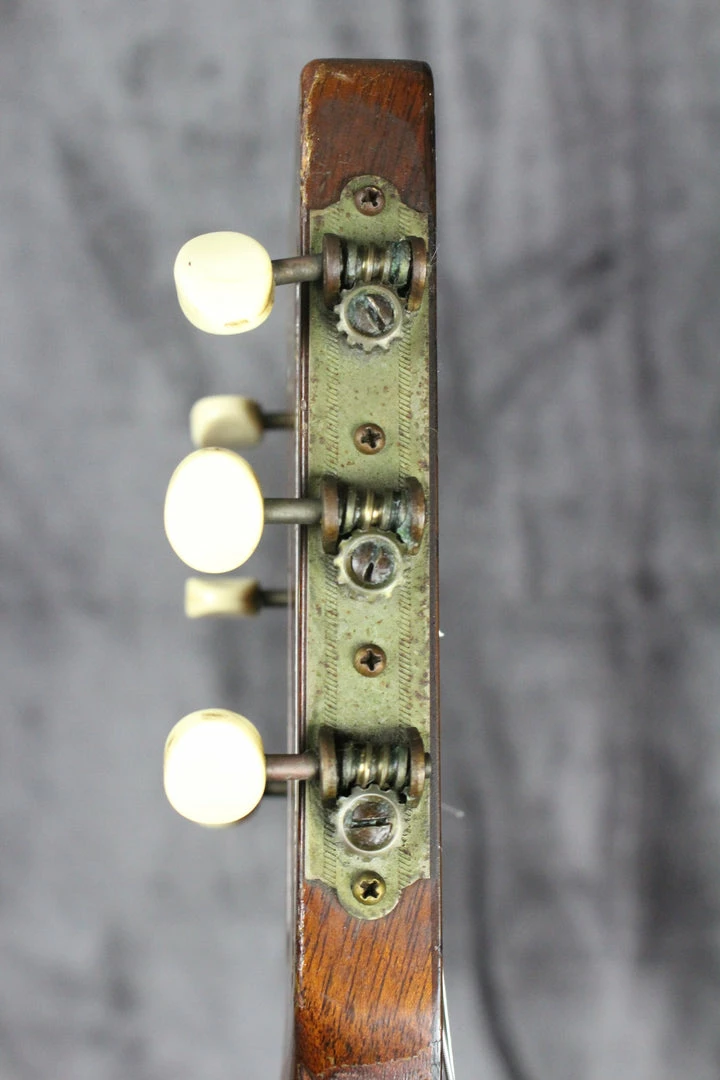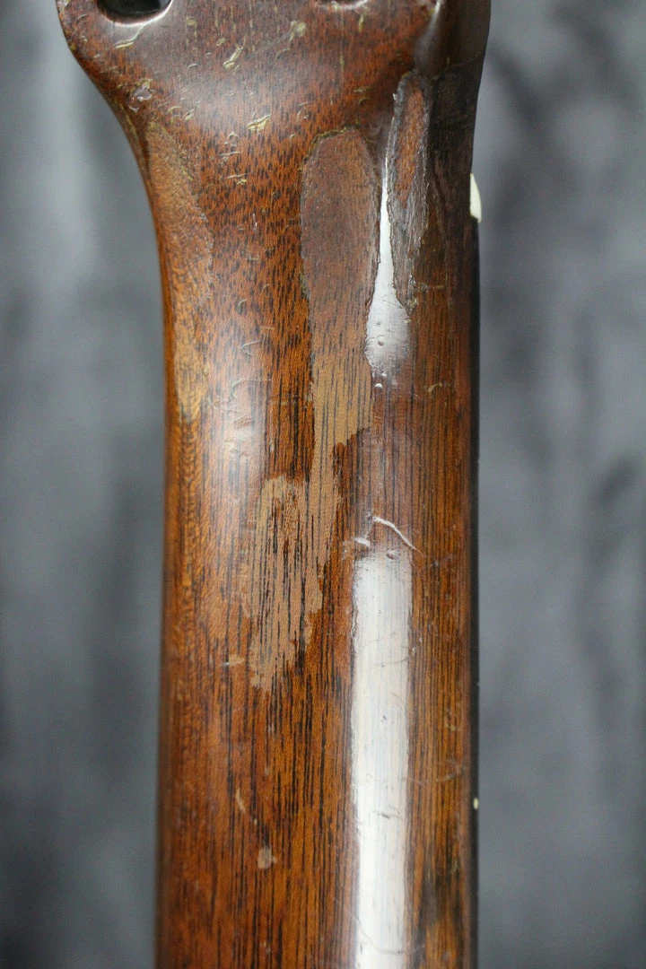 Cosmetics: This instrument has wear that is consistent with an instrument from the 1950’s. It has various nicks, dings, and scratches on the body and neck. There is a fair amount of wear below the sound hole from being played. The finish has worn off in areas on the back of the neck (See Photos Please). You can see where this guitar had pickguards and there is slight discoloration where they were. The action is a little high, but this guitar sounds amazing.