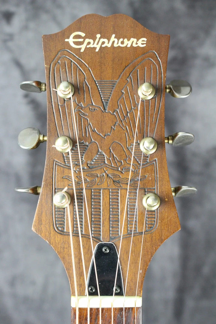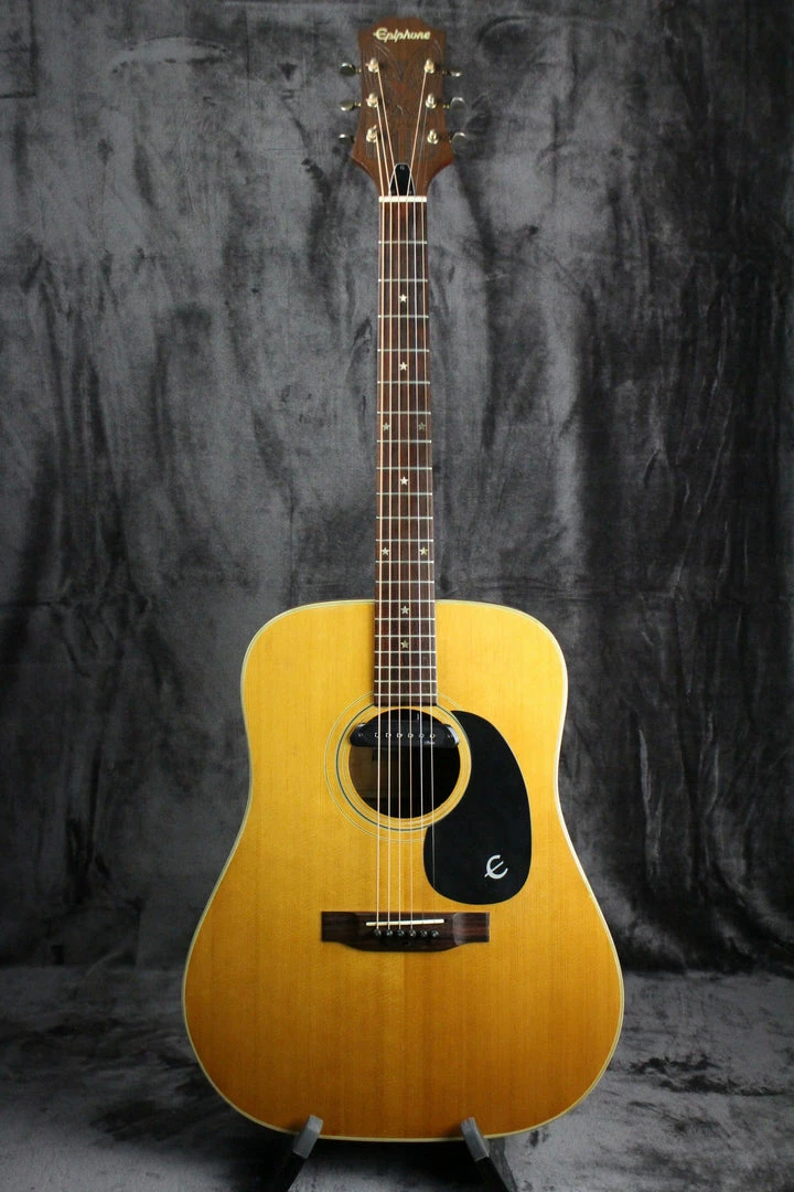 Pickups/Hardware: Rosewood bridge, open gear tuning keys, Amumu sound hole pickup with endpin input jack, Epiphone logo pickguard.