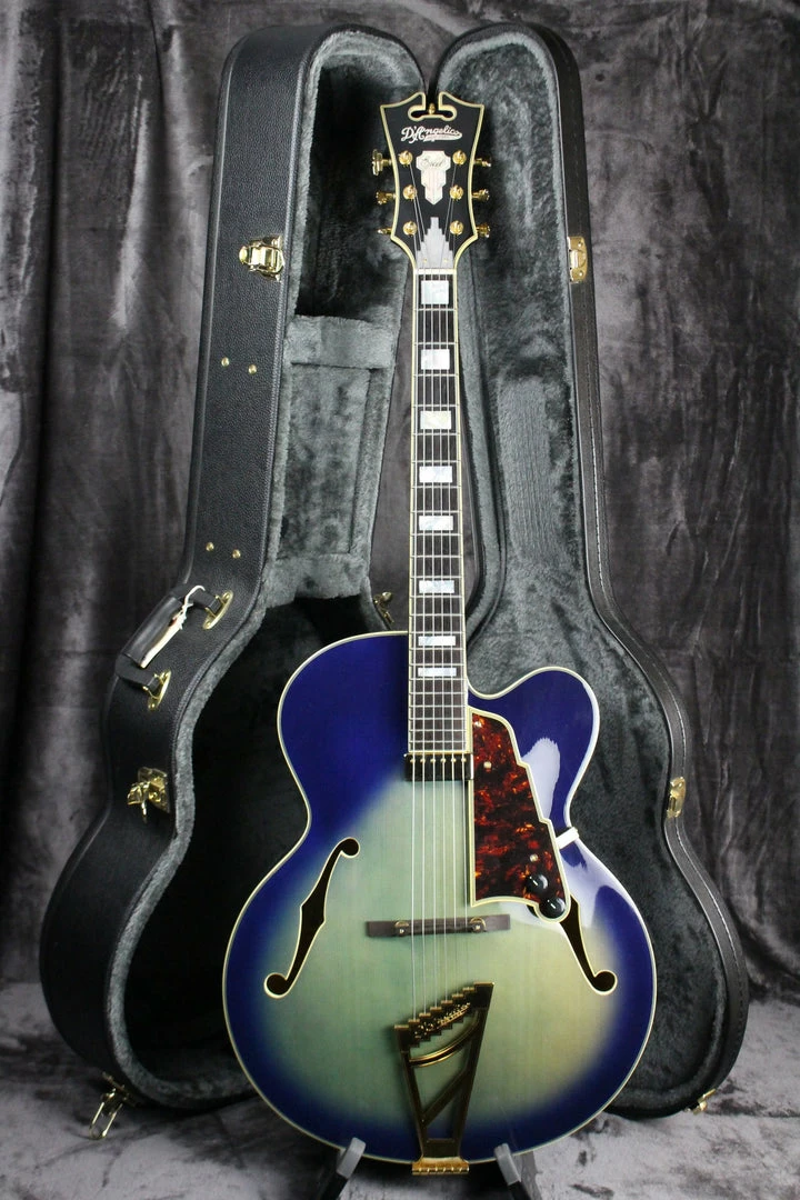 Summary: John D’Angelico’s original archtop design is legend, and the EXL-1 is its modern-day counterpart. True to the original in every detail and upgraded, the EXL-1 features a USA-made Seymour Duncan Johnny Smith Floating Mini-Humbucker to maximize the acoustic tone of its commanding 17-inch-wide, 3-inch-deep body. Art Deco-inspired details frame the EXL-1—with a scroll-style neck bevel, mother-of-pearl inlays on an ebony bridge, and split-block inlays on a pau ferro fingerboard.