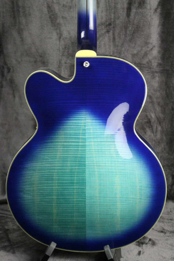 Pickups/Hardware: One Johnny Smith floating mini-humbucker, imperial style tuning keys, tortoiseshell pickguard, master volume/master tone controls, harp style tailpiece.