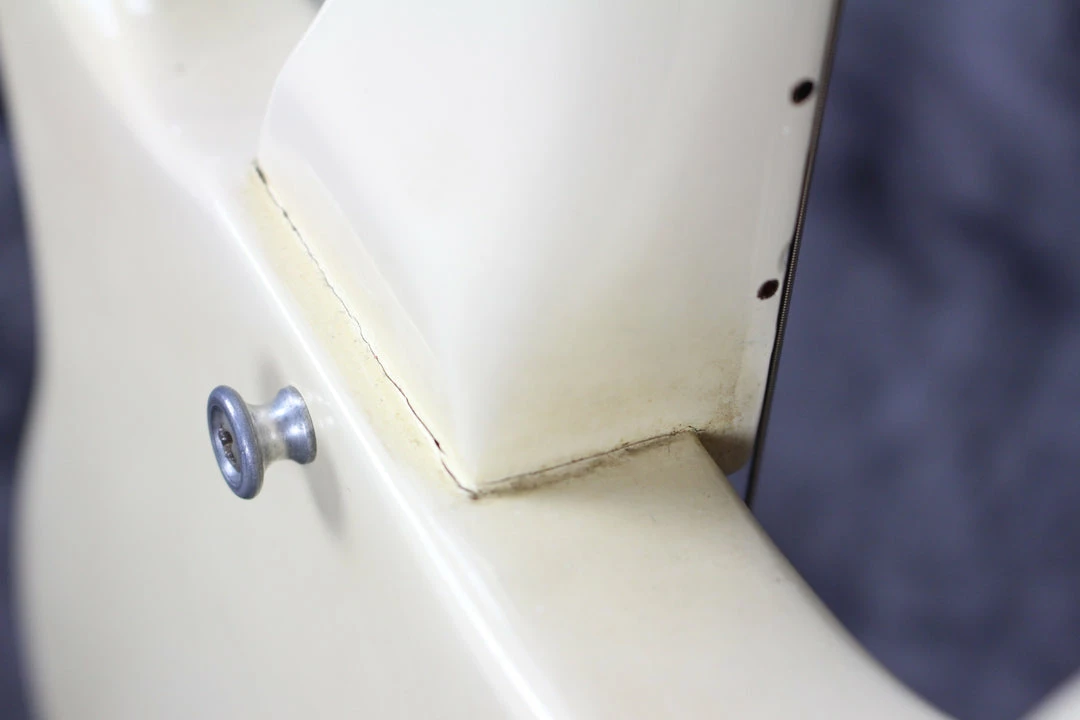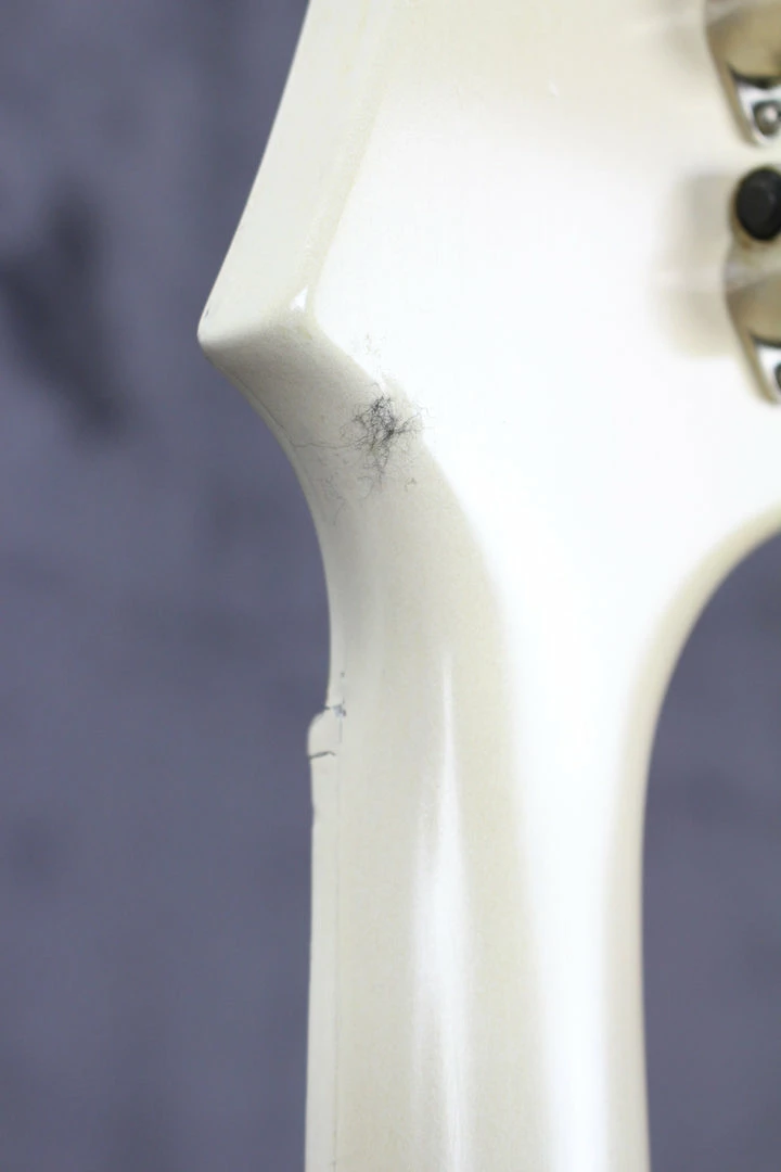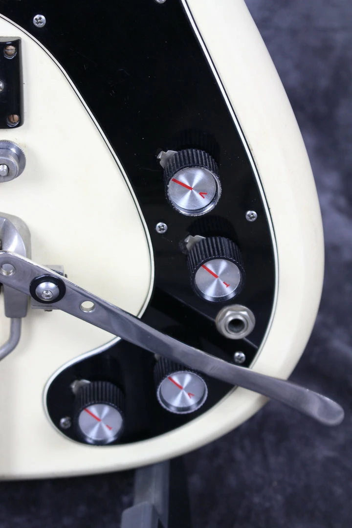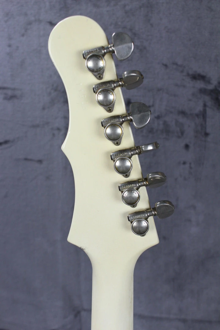 Cosmetics: This guitar is in good shape for being built in 1965. The batwing headstock has some beautiful finish checking on the front of it. There is a chip of paint (seen in photos) missing on the back of the neck near the 10th fret.