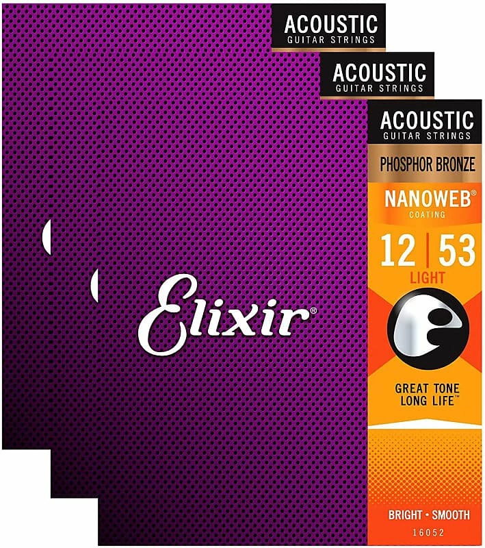 ElixirยฎStrings Acoustic Phosphor Bronze with NANOWEB ยฎ Coating deliver distinctive phosphor bronze warmth and sparkle together with extended tone life.