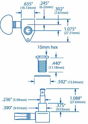Mounting screws and threaded hex peghead bushings with washers are included. 10mm (13/32″) diameter pegholes required.