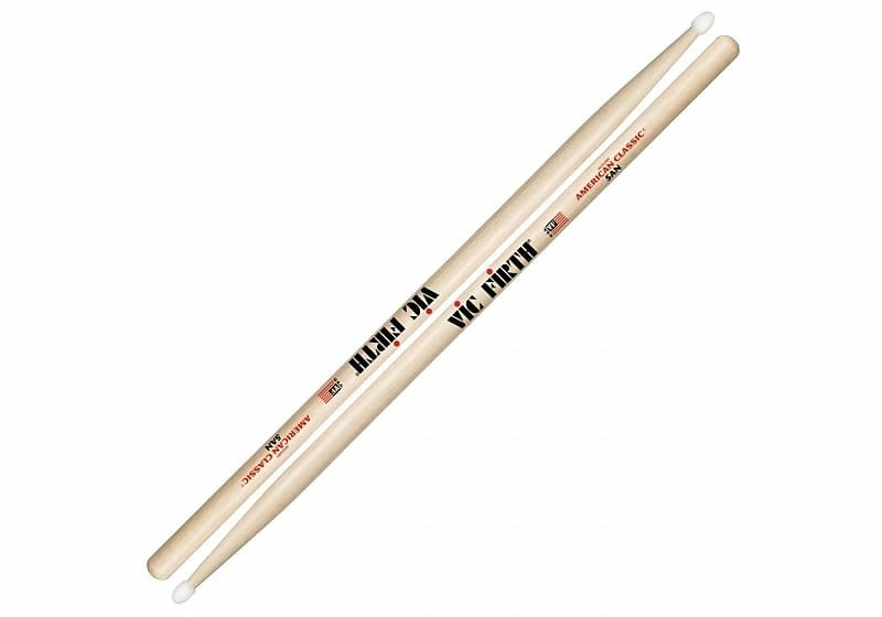 This is a pair of Vic Firth 5AN Drum sticks with nylon tips
