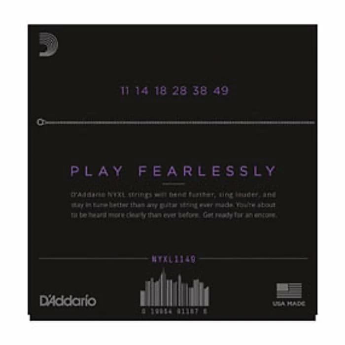 range – more presence and crunch to cut through the mix - NYXL1149 offers moderate flexibility and a full, beefy tone: Plain Steel .011, .014, .018, Nickel Wound .028, .038, .049