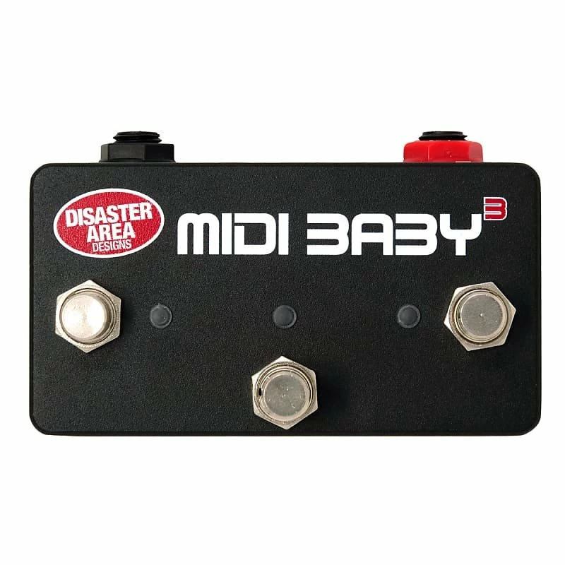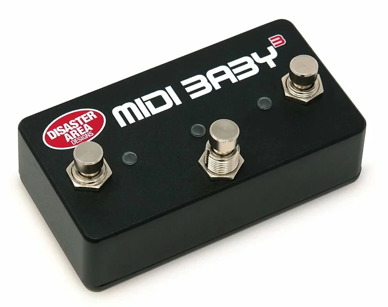 MIDI Baby 3 works like three MIDI Babies in a single enclosure โ three footswitches, three LEDs, triple the programmability.