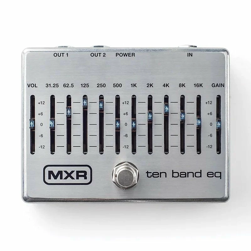 The MXR Ten Band EQ lets you tune your bass or guitar rig in seconds, and itโs been upgraded with noise-reduction circuitry, true bypass switching, a lightweight aluminum housing, brighter LEDs, and a second output.