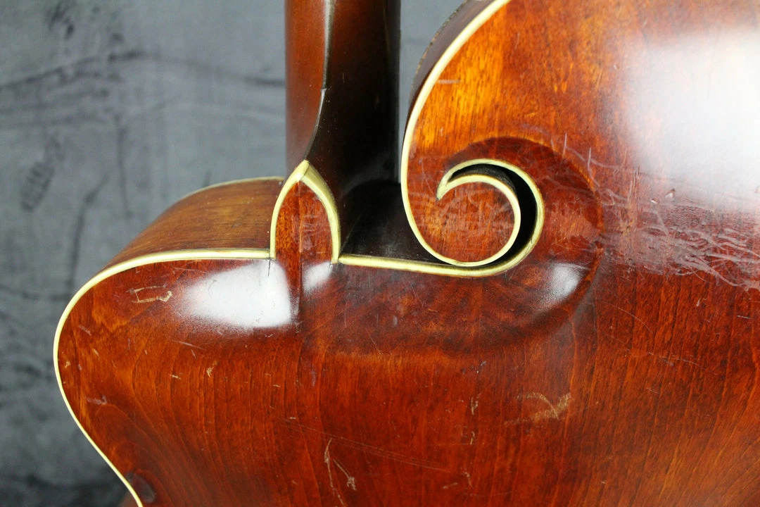 Summary: The Gibson Style “U” was a harp guitar produced by the Gibson Mandolin-Guitar Company from 1902 until 1925. The Style “U” was produced in several different configurations over the years, with the most common variation having ten sub-bass strings. The tops were made of hand carved spruce and, although in the Gibson catalog the back and sides of the instrument were listed as being made of maple, most of them were built out of walnut. According to George Gruhn, Gibson expected the instrument to surpass the guitar as the next evolution of the instrument. It was the most expensive Gibson guitar produced until 1934 and appeared in the Gibson catalogs for sale from 1902 to 1937.