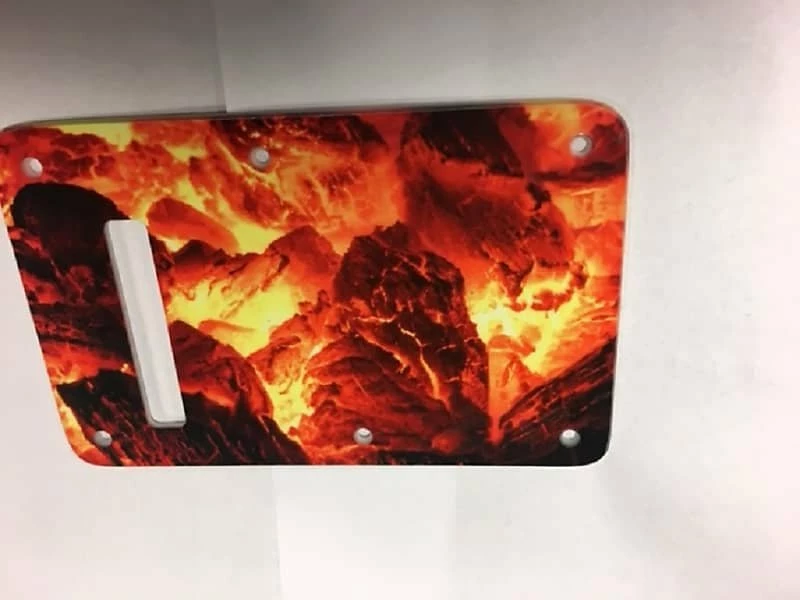 This is a cool Fire Ember graphic designed Stratocaster SSS pickguard & matching backplate…