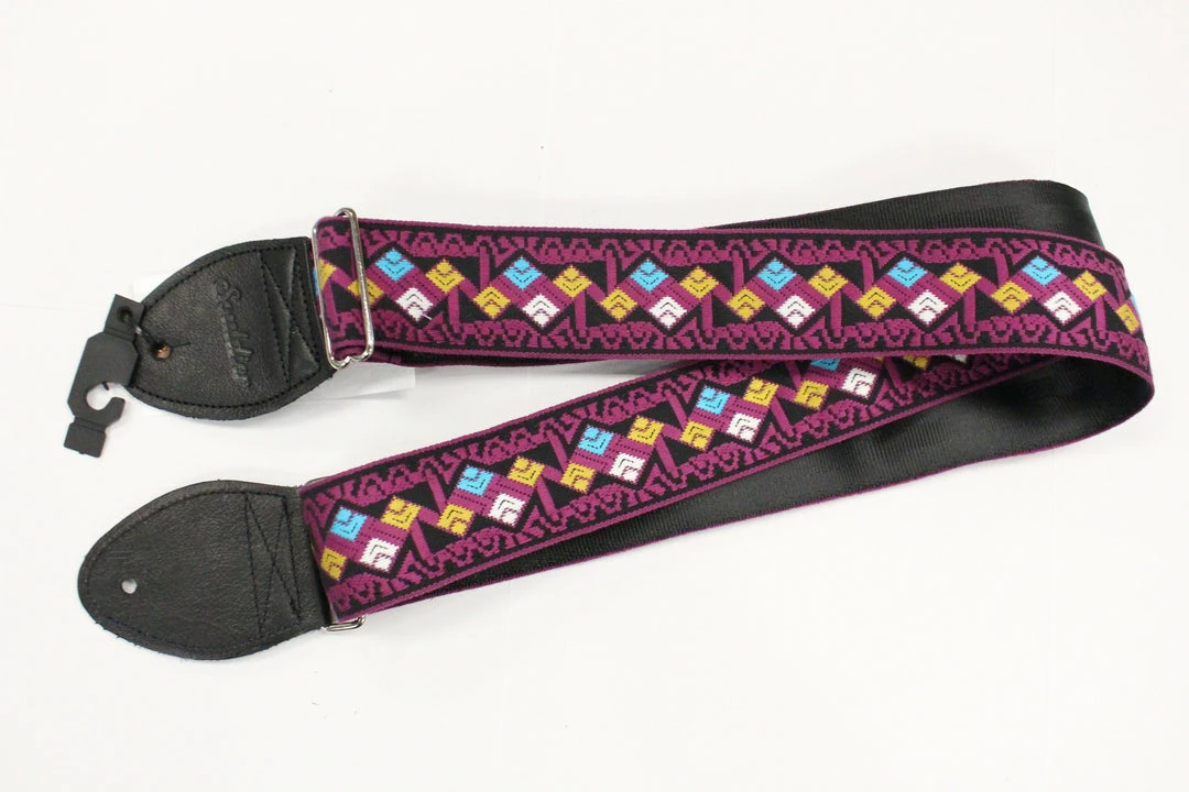 This is a new Souldier Custom Guitar Strap with the Clapton Purple design and black leather ends