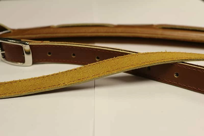 This strap is called the “Souldier Plain Saddle Strap – SSD0000TN02TN”ย – this one is a tan leather guitar strap with a tan leather pad…
